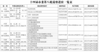 根据市委巡察工作统一部署,本轮对市司法局、市民宗委、市法院、市检察院、市社会科学院、市社会主义学院、市工程科学技术研究院、武汉软件工程职业学院(武汉开放大学)、武汉城市职业学院、市第一医院、市中心医院等单位党组织开展常规巡察,同步开展选人用人工作、落实意识形态工作责任制专项检查;对市城管委、市交通运输局、市商务局、市应急管理局、市市场监督管理局、市城投集团等单位党组织开展燃气安全管理推动行业高质量发展专项巡察。指导对区法院、区检察院开展区级交叉巡察。