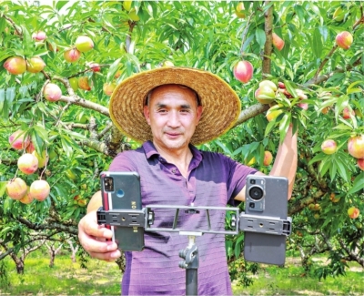 武汉市东西湖区东山街道陈家冲村的红血桃今年喜获丰收,果农董忠臣每天都到桃园里直播,收到了不少订单,同时,每天来桃园采摘的市民也络绎不绝。