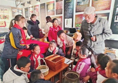 小学生在村文史馆里听讲解。 |