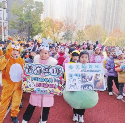 长江日报讯 12月16日,汉阳区钟家村方岛小学举办第二届读书节活动——“FIND冬天”。走进校园,仿佛来到了一个浪漫的冬日童话世界。冬日暖衣计划给小树换新装,冬日主题绘本故事表演,冬日火热集市体验图书换享的乐趣,孩子们沉浸式玩转童话,体验冬天。