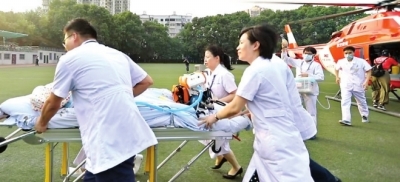 地空接力,转运重症患儿。 |