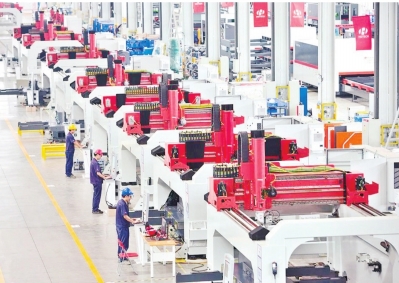 华工科技国内首条三维五轴激光切割装备流线化智造生产线。 |