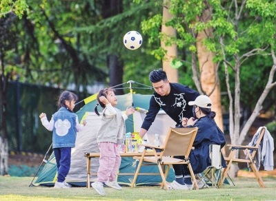 市民在月湖风景区草坪上露营。 |