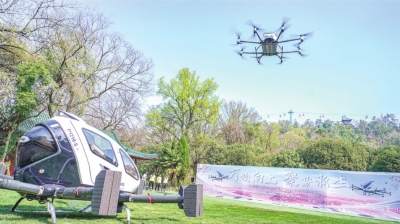 全球首飞!无人驾驶飞行器东湖“飞天”赏美景。 李辉 摄 |