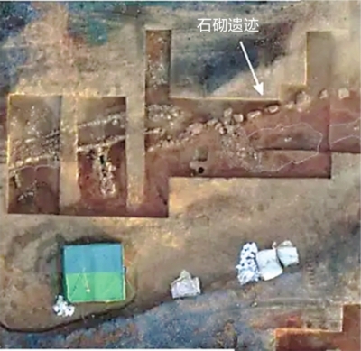 杨家湾北坡发现的大规模石砌遗迹。 |