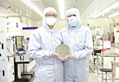 散发着金属光泽的晶圆下线,将能制作成具有自主知识产权的高端射频滤波器。 企业供图 |
