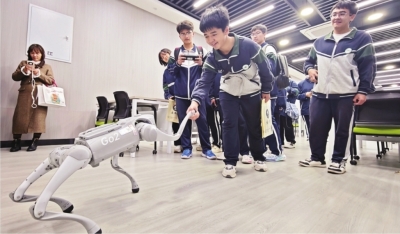 学生们先后来到卓尔体育馆、计算机学院人工智能实验室,与人形机器人和机器狗互动。在工学部大创中心,活灵活现的仿生鱼在鱼缸内游来游去让同学们啧啧称奇。在万林艺术博物馆,“盛世修典——中国历代绘画大系成果展·武汉大学专题展”,生动诠释了中华文脉的传承与创新。校史馆内,抗战时期西迁乐山的办学历程让同学们热泪盈眶。