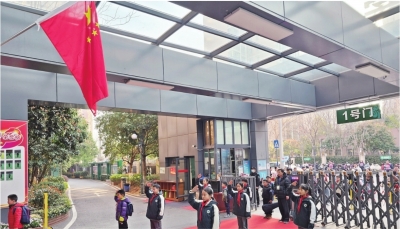 长江日报讯(记者刘嘉 通讯员韩露)3月18日清晨,武汉市常青树实验学校的学生正陆续走进校门。8:15,国歌声响起。校门外,正匆匆走来的学生、家长停下脚步,站在人行道上,面向国旗的方向敬队礼、行注目礼。