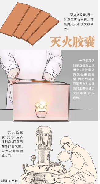 我们将微胶囊“变形”成多种形态:厚度0.2厘米的柔性贴片可直接贴合物体表面;直径1厘米的灭火绳可随电缆布线;甚至可掺入涂料直接喷涂在配电柜内壁。