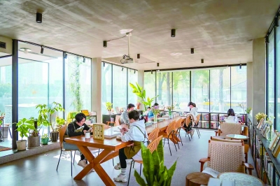 西北湖畔的城市书房里人们收获阅读的乐趣。 |