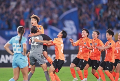 武汉女足球员庆祝登顶女足亚冠。 新华社发 |