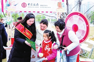今年3月15日,中国银行湖北省分行主办的“保障金融权益助力美好生活—荆楚文化消保行”活动在西北湖畔举行,活动将非遗文化融入金融教育中,吸引了众多市民参与。现场十余家金融机构组成的消保市集,以竹简墙、编钟等荆楚元素装饰一新,既是咨询点又是热门打卡点;反诈知识有奖问答区排起长队;湖北大鼓说消保、鱼灯舞非遗表演,赢得了市民阵阵掌声和笑声。