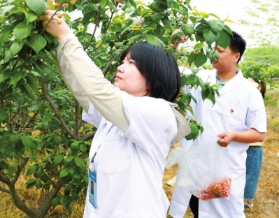 武汉农检中心党员干部正在抽检樱桃,守护消费者舌尖上的安全。 |