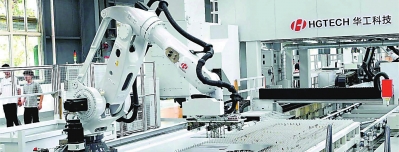 华工科技中试基地,机器手臂灵巧地抓取钢板进行激光切割加工、传递上下料产线演示。 |