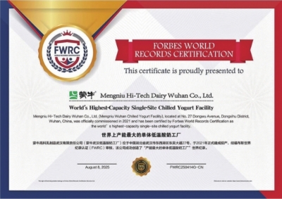 此次蒙牛低温(武汉)工厂荣膺“世界上产能最大的单体低温酸奶工厂”FWRC福布斯世界纪录认证,是国际权威官方机构对蒙牛世界级工厂、科研实力与品质标准的权威见证,更是中国乳业整体智造水平跃升全球前列的有力证明。作为武汉市、东西湖区重点招商引资企业,蒙牛低温(武汉)工厂以切实行动为行业打造新质生产力作出了表率。
