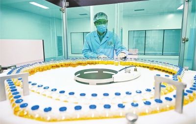 走进坐落于光谷生物城的鼎康(武汉)生物医药有限公司生产车间,如同进入一个精密的“管线森林”。空气经过多级过滤,温湿度被严格锁定,如巨型银蛋的生物反应器内,生物细胞迅速增殖……正因为有了这个中试平台,乐普生物的抗肿瘤药“普特利单抗注射液”,才能在仅仅18个月内完成从技术转移、工艺优化、工艺表征到工艺验证的全流程,创造了行业速度。