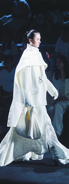 时装周开幕大秀现场,模特展示新汉派服装设计大赛作品。 黄骋 摄 |