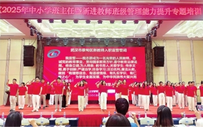 “培育”提素养,专业能力“专业化”。蔡甸教育构建“国培+省培+市培+区培+校培”五级培训体系;培训紧扣教学实际,如针对新课标改革,开展“新教师跟岗研修”“班主任专题培训”“教育数字化能力提升”等项目;针对高考改革,组织高中教师开展“说题、命题”比赛,全区中小学专任教师与校长参与业务素质测试,以考促学、以训促能。