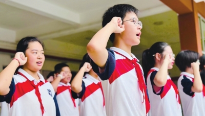 开学典礼上,中北路中学的同学们坚定宣誓。 |