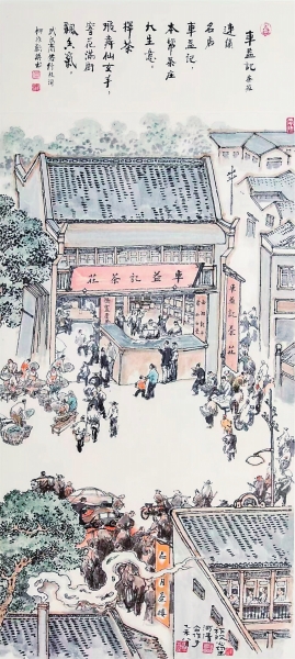 车益记茶庄,汉口老字号茶庄,曾经与谦祥益、叶开泰、汪玉霞共誉为汉正街四大名店。此画由毕心望、黄河清、何祚欢三位艺术家联合创作。 |