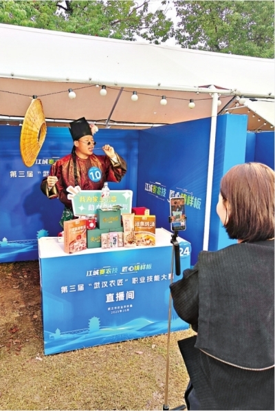 农播客比赛中,选手将汉服穿到比赛现场。 (本组图片均由长江日报记者余康庭摄) |