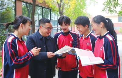 武钢实验教育集团党总支书记黄祥军和学生们在一起。 |