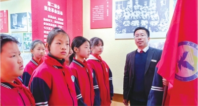 蔡榨小学党支部书记、校长张传东为师生讲述革命先驱的故事。 |