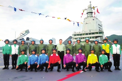 离别时,全舰官兵依依不舍,在飞行甲板和码头整齐列队,向习主席敬礼,齐声高呼“听党指挥、能打胜仗、作风优良”。