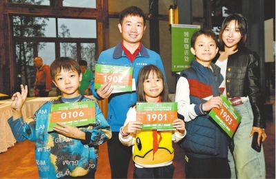 参赛家庭展示号码布。 长江日报记者胡冬冬 摄 |