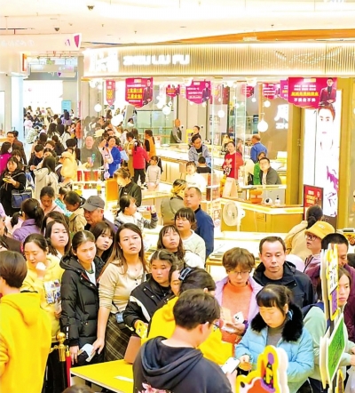 11月5日,青山印象城商场顾客川流不息。 |