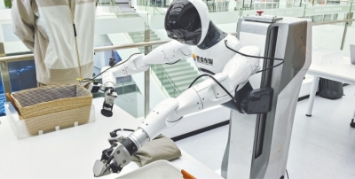 具身智能机器人进行精细动作训练。 长江日报记者覃柳玮 摄 |