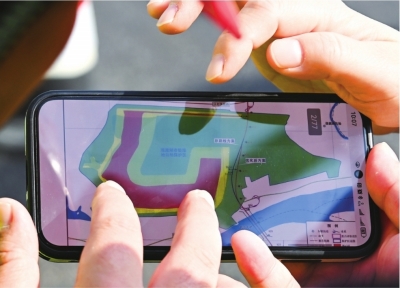 施工负责人展示手机里存储的《涨渡湖湿地自然保护区环境影响评估报告》示意图,桥梁线路改动的痕迹清晰可见。 |