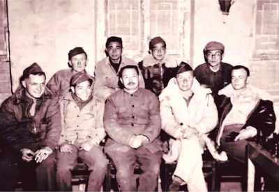 黎雪(后排左二)为美军驻延安观察组担任英语翻译,前排中为时任八路军参谋长叶剑英。 |
