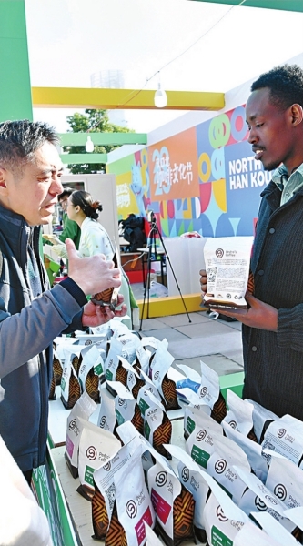 2025年武汉(汉口北)商品交易会酒店用品及咖啡茶饮展区内,一缕来自非洲大陆的醇厚香气格外诱人。11月21日,卢旺达咖啡豆商人布赖恩的展台前,往来客商络绎不绝,他双手递出小袋咖啡豆的身影成为展会一道风景。