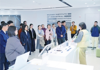 来到武创院,“城市观察团”仿佛走进武汉的科创生态圈——东风汽车、烽火通信、华工激光与华中科技大学、武汉大学以及湖北九峰山实验室、湖北珞珈实验室、国家信息光电子创新中心等企业、高校、科研院所汇聚起产学研全链条。