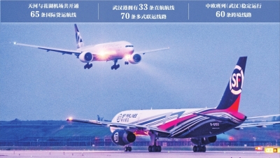 截至目前,天河与花湖机场共开通65条国际货运航线,武汉港拥有33条直航航线与70条多式联运线路,中欧班列(武汉)稳定运行60条跨境线路。“全球货聚武汉、武汉货通全国”的物流体系已然成型,为畅通国内大循环、链接国内国际双循环提供了坚实支撑。