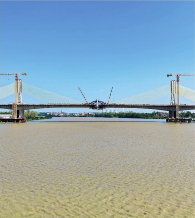 武天高速上的马口汉江特大桥冲刺合龙。 长江日报记者范芃 摄 |