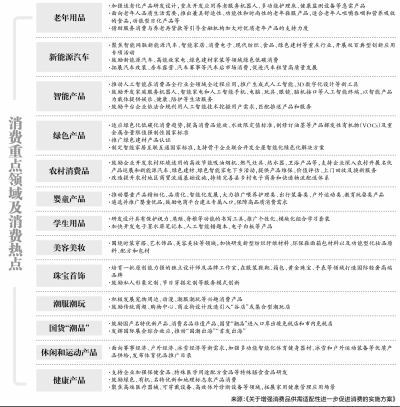 深挖存量,要求促进绿色产品扩容迭代、推动农村消费品提质升级、大力发展休闲和运动产品等。包括适应绿色化低碳化消费趋势,提高消费品能效、水效限定值标准;面向赛事经济、户外经济、冰雪经济等新需求,加强多功能智能化体育健身器材、冰雪和户外运动装备等优质产品供给。