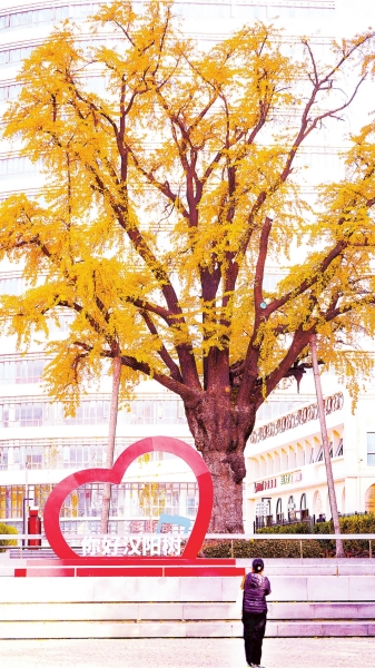 长江日报讯(记者明眺生 通讯员孙姝 孙悦)树上披金甲,树下铺金毯。眼下,546岁的汉阳树树叶金黄,进入最佳观赏期,引来市民和游客赏叶拍照。