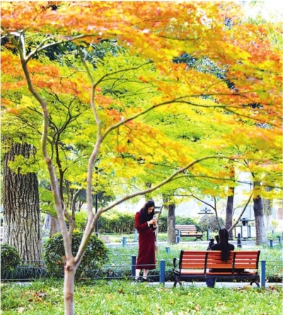 ■ 美文 解放公园枫影 在这如诗如画的景致里,一棵枫树傲然立于画面中央,枝头缀满橙红色和金黄色叶片,仿佛被暖阳浸染,晕开最浓烈的色彩。阳光穿过枝叶的缝隙,在地面投下斑驳的光影,宛如洒落一地的碎金。 不远处的长椅上,一人静坐,聆听微风拂过树梢的沙沙声,像在独享季节的静谧;另一人则驻足小径旁,举起手机将这片枫林的诗意定格成永恒。周围的树木依旧苍翠,与这棵绚烂的枫树相映成趣,共同勾勒出一幅和谐而灵动的自然画卷。 这里没有城市的喧嚣,唯有风过林间的低语。每一片飘落的枫叶都像大自然寄出的信笺,邀请人们驻足,赴一场与时光的温柔约会。在这里,时间仿佛放慢了脚步,让人得以沉浸在这份宁静与美丽之中,忘却尘世的纷扰。 ——大武汉客户端网友@熊军武(配照摄于解放公园) |