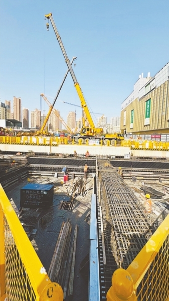 地铁10号线一期余家头站最后一块顶板施工。 长江日报记者陶常宁 摄 |