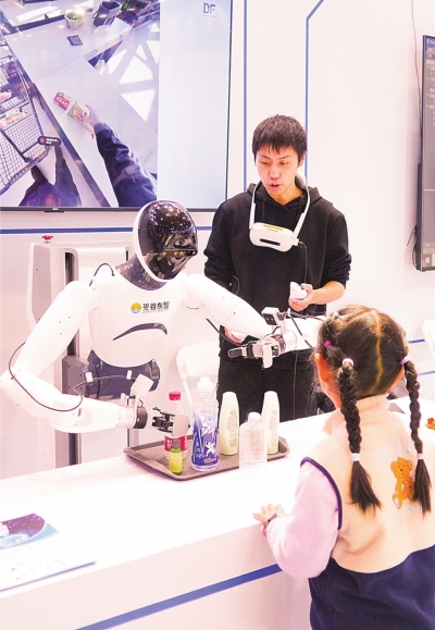 2025中国5G+工业互联网大会创新成果展上,光谷东智人形机器人亮绝活。 长江日报记者何晓刚 摄 |