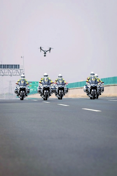 湖北省公安厅交管总队“无人机+智慧铁骑”快反队在高速公路巡逻。 |