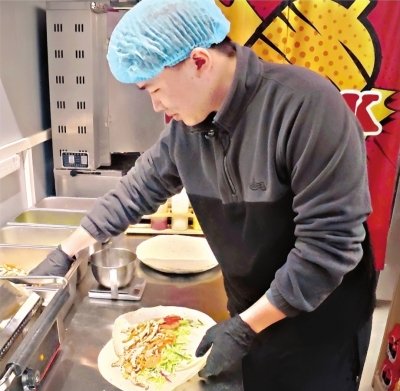张麒标正在制作沙威玛。 长江日报记者郝天娇 摄 |