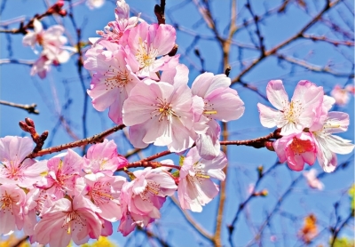 市园林科普公园寒风中怒放的奖章樱。 长江日报记者李子云 摄 |