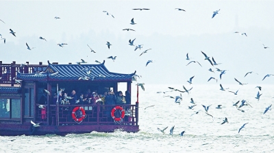 12月2日,成群的西伯利亚“白色精灵”红嘴鸥如约抵达武汉东湖,开启越冬之旅。游客搭乘东湖游船往返楚风园与磨山时,可以近距离邂逅这群可爱的精灵,看红嘴鸥伴着游船翩跹飞舞,沉浸式感受东湖冬日独有的生态之美。