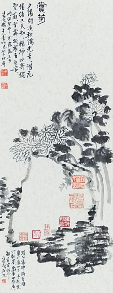 片刻静思之后,忽如“灵光乍现”:为何不用现成的印章,做成一首小诗呢?把用以组诗的印章盖在中间,两旁以毛笔书写诗作的原文,这样的贺卡既有新意又有观赏性,岂不是两全其美?这真是一念转换,峰回路转。很快,我的第一首集印诗由此诞生——“我见青山多妩媚,津门长客胡不归?烟云供养逍遥乐,不看人面免低眉。”这是一首以六方闲章组合而成的言志小诗,其中第一、第四两句分别是辛弃疾和白居易的名句,中间那两句则是我用闲章印文“拼装组合”而成的。