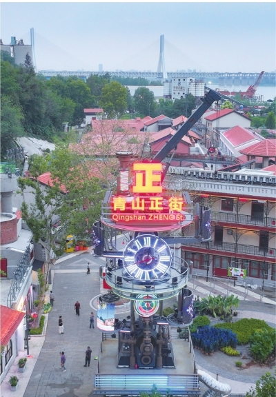 青山正街是青山古镇更新改造片区的首开项目。结合青山区的工业元素特点,青山正街正打造一个还原武汉20世纪60年代的生活情景和新中国钢铁时代的情境街区。今年5月1日,青山正街开街试运营。