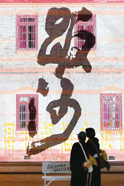 张少华方言书法光影秀点亮百年老建筑。 |