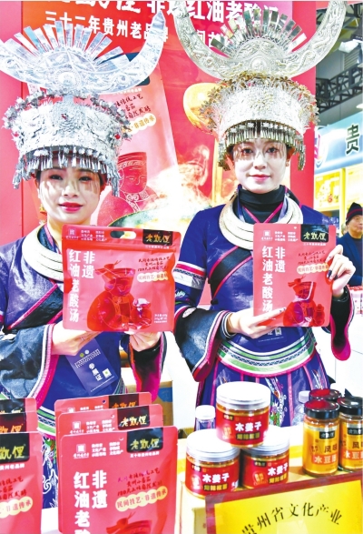 贵州企业展出各种酸汤产品。 长江日报记者詹松 摄 |